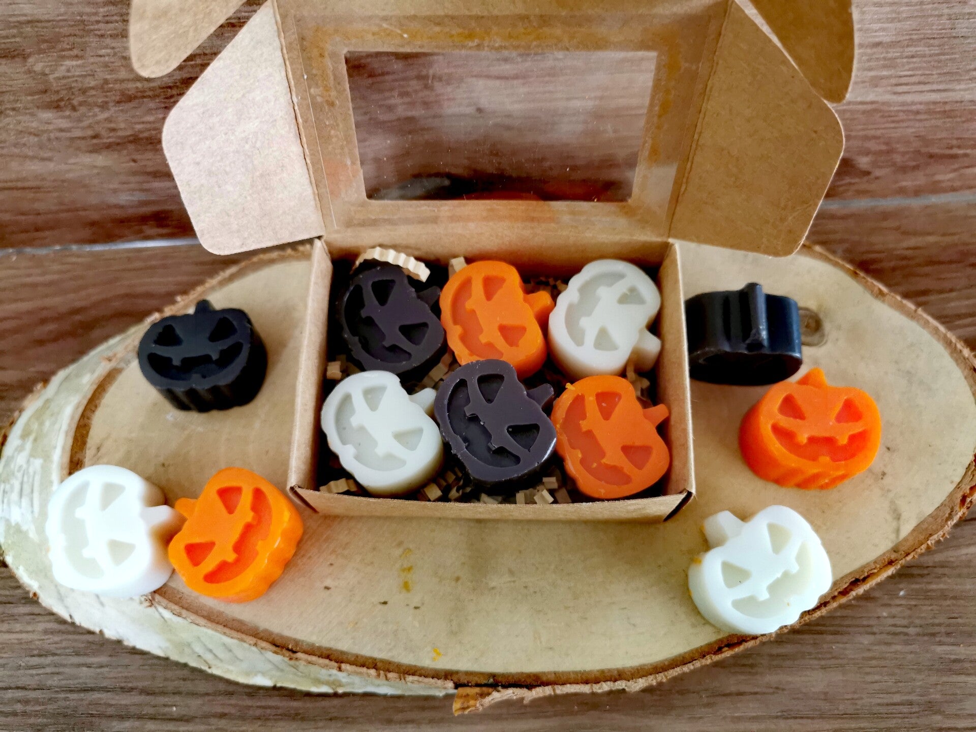 Venez découvrir ce petit coffret de mini- fondants citrouilles fabriqué à base de cire d Olive trop mignons 😍.
